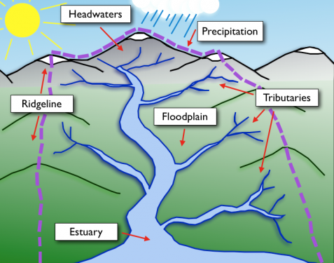 Watersheds are drainage basins where runoff from precipitation or springs is channeled. The extent of the watershed depends on the area and topography of the land draining to the same discharge point (USGS 2013b). Inland watersheds are areas where instream flow drains into discharge points where it either pools in lakes and ponds, and evaporation occurs, or it infiltrates the soil and becomes incorporated into ground water (USGS 2013b). Coastal watersheds may include estuaries where rivers and streams flow into the oceans and mixing occurs. Again, this water is referred to as freshwater inflows. The sources of freshwater inflows begin mostly upstream and include rainfall, river flow, runoff, groundwater, and return flows. Rainfall is a freshwater source that can occur directly on the estuary. The sources of freshwater influence the amount, timing, frequency, and duration of the freshwater inflows into the estuary (Montagna et al. 2013).